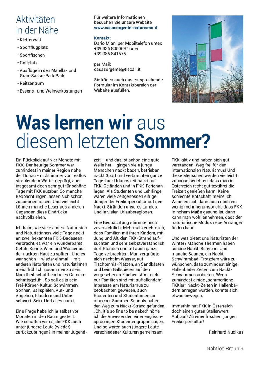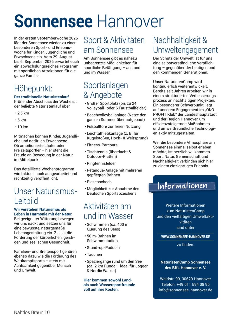 NAHTLOS BRAUNInformationen für NaturistenOffizielles Organ des Österreichischen Naturistenverbandes (ÖNV) Ausgabe 276 • Nr. 1/2026 |