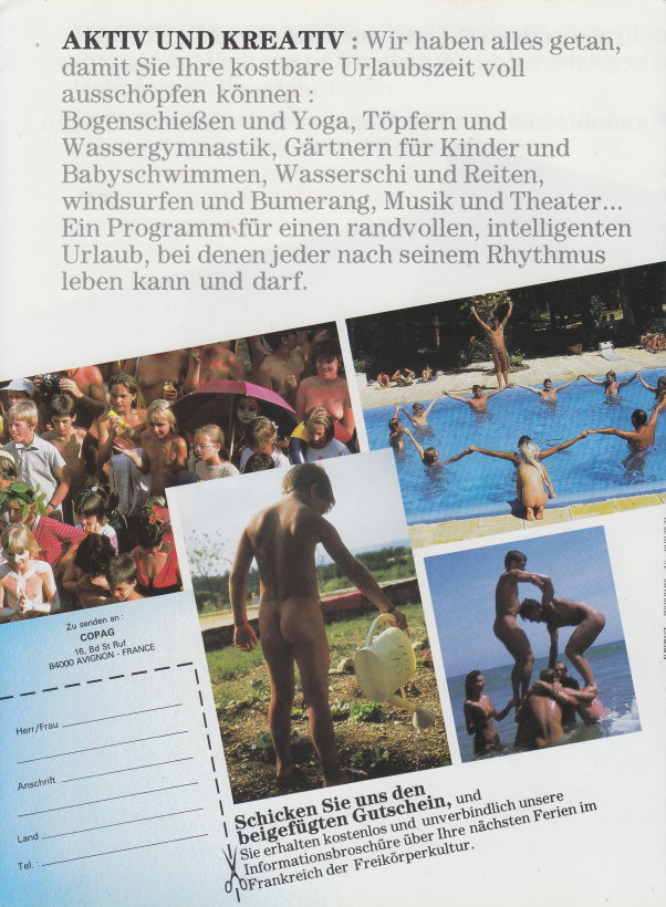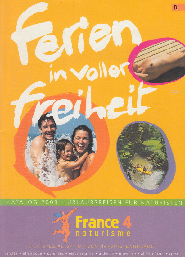 Bei »France 4 naturisme« war das Ehepaar Pieter und Vivienne mit ihren beiden Kindern Teun und Evie für viele Jahre das „Aushängeschild”. Jahrelang stand die Familie für die Prospekte Modell - und die Bilder werden auch heute noch verwendet. Quelle: → Uit! / Sommer 2009 |