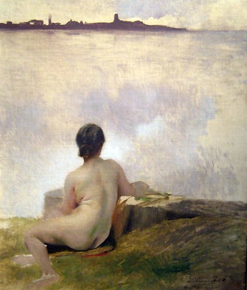 Nackte, aufs Meer schauend zurück