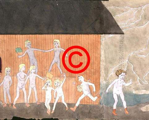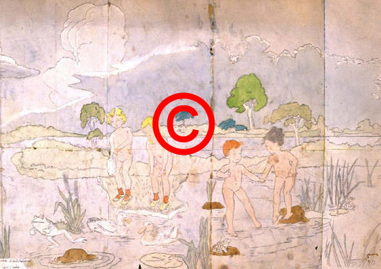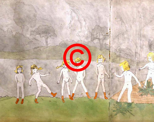 Die Bilder von Henry Darger sind - für sich allein gesehen - mit Sicherheit gewöhnungebedürftig. Sie lassen sich auch nicht dem Bereich der Frei- körperkultur zurechnen, sie illustrieren lediglich eine fiktive Geschichte, die von den sieben Prinzessinnen des Volkes der Abbiennia handelt. Dabei geht es um Versklavung, Aufstand und Rebellion, um Mißbrauch und Kindermord, um Schlachten und Kriege. Darger hat in dieser Geschichte seine Kindheitserlebnisse verarbeitet. Seine Mutter starb, als er gerade erst 4 Jahre alt war. Mit 8 Jahren kam Henry Darger in ein katholisches Kinderheim, weil sein Vater aus Krank- heitsgründen in ein Altersheim eingewiesen werden musste. Es war ein sehr strenges Kinderheim, in welchem die Kinder sehr schwer arbeiten mussten - und, wenn sie nicht gehorchten, auch sehr hart bestraft wurden. Die nackten Kinder symbolisieren die zarten und zerbrechlichen Opfer dieser körperlichen und wohl auch der sexuellen Misshandlungen. Es ist nicht bekannt, ob Darger ebenfalls missbraucht wurde. Auffällig an seinen Werken ist, dass seine Figuren zumeist geschlechtslos sind, bzw. Mädchen auch oft mit einem Penis dargestellt sind. Einige Experten gehen davon aus, dass Darger keine Kenntnisse des Geschlechtlichen hatte, ihm die weibliche Anatomie unbe- kannt war. Copyright / Urheberrecht Henry Darger hatte keine Nachkommen, hinterließ auch kein Testament. Das American Folk Art Museum in New York unterhält seit 2001 das »Henry-Darger-Studien-Centrum«. |