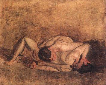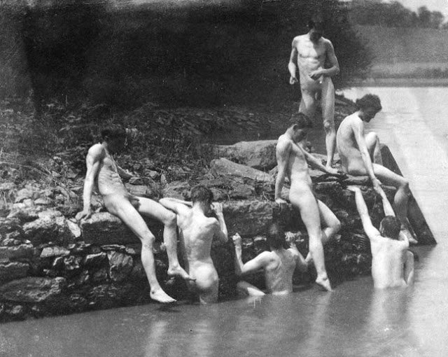 Diese beiden Fotos (links) dienten Eakins als „grobe” Vorlage für sein Werk »The Swimming Hole« → 1883. |