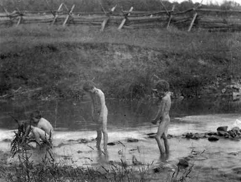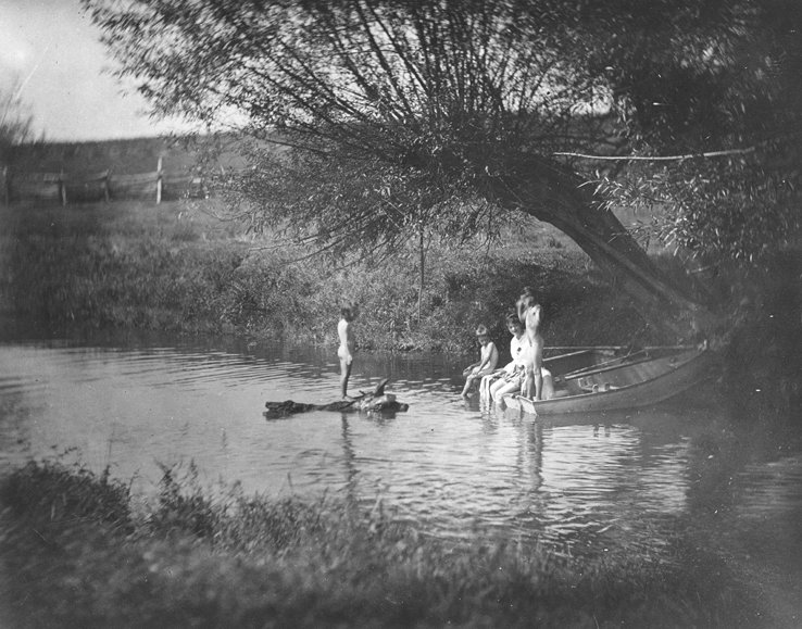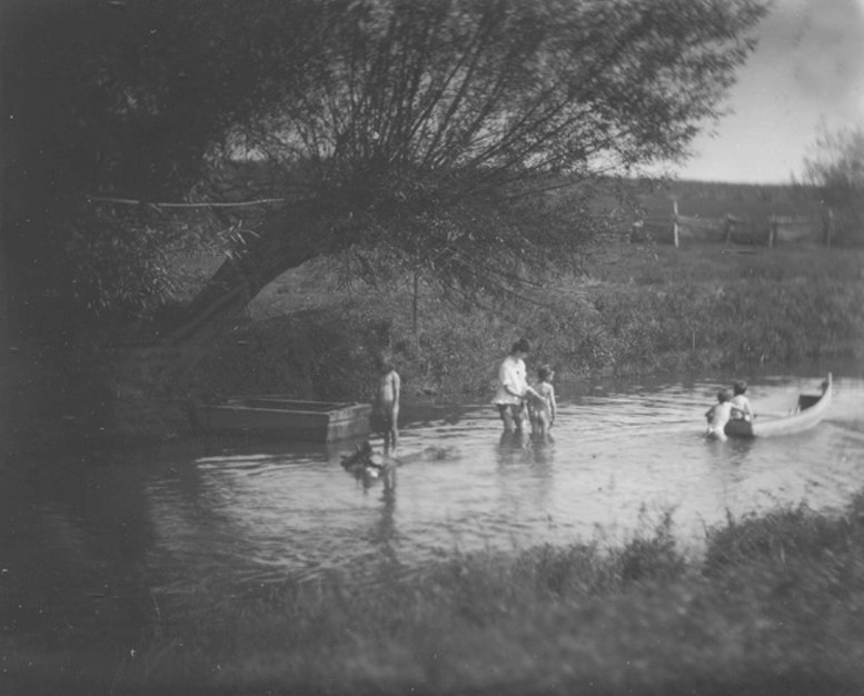 | Viel Zeit verbrachte Thomas Eakins auf der Farm seiner Schwester Frances Crowell („Fanny”) in Avondale, Pennsylvania. Hier fotografierte er nicht nur die Kinder seiner Schwester, sondern auch seine Frau Susan Macdowell Eakins (1851-1938), ebenfalls Malerin. |