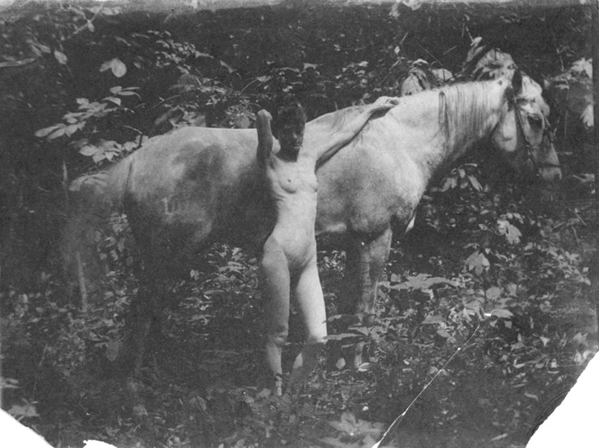 | Susan Macdowell Eakins, Ehefrau von Thomas Eakins mit seinem Pferd „Billy” |