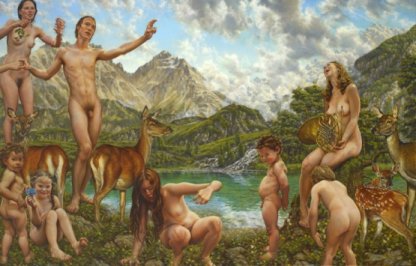 Das Bild „Der Hirte” weicht ein wenig ab, denn durch die Rehe, die fröhlichen und glücklichen Menschen und nicht zuletzt die sie umgebende Idylle, wird das Bild zu einem wünschens- und erstrebenswerten Paradies.