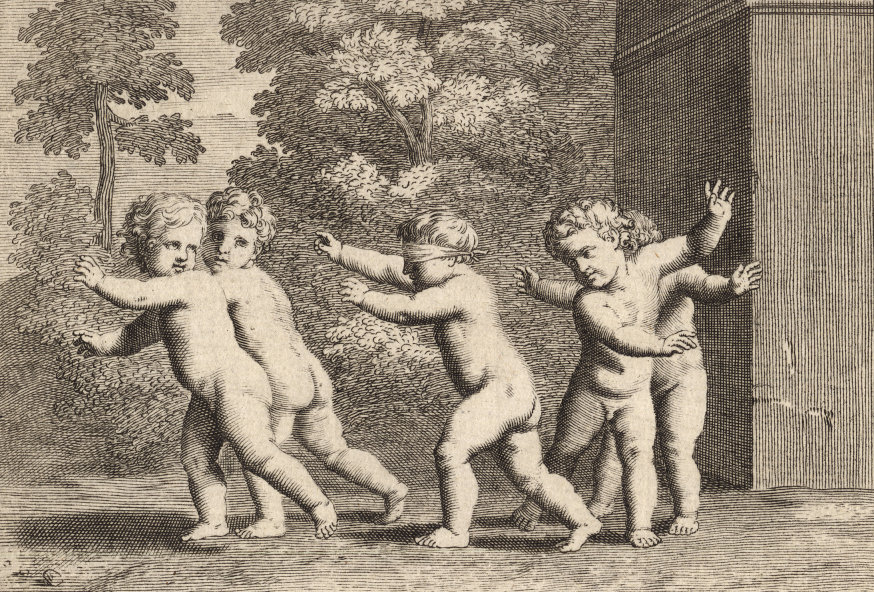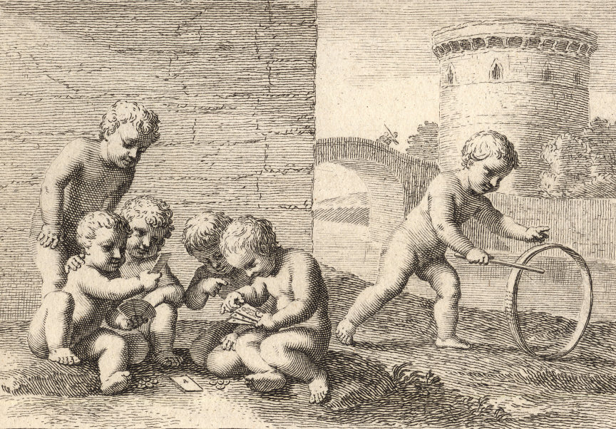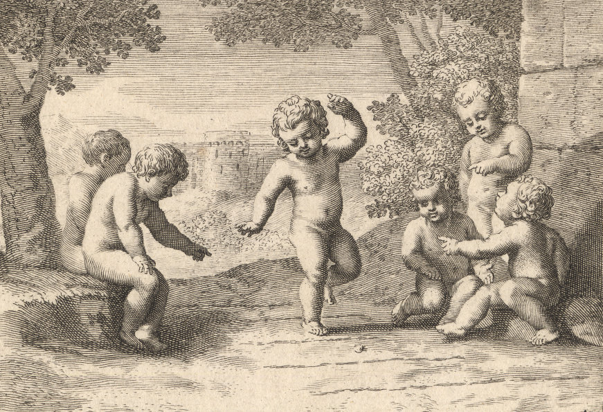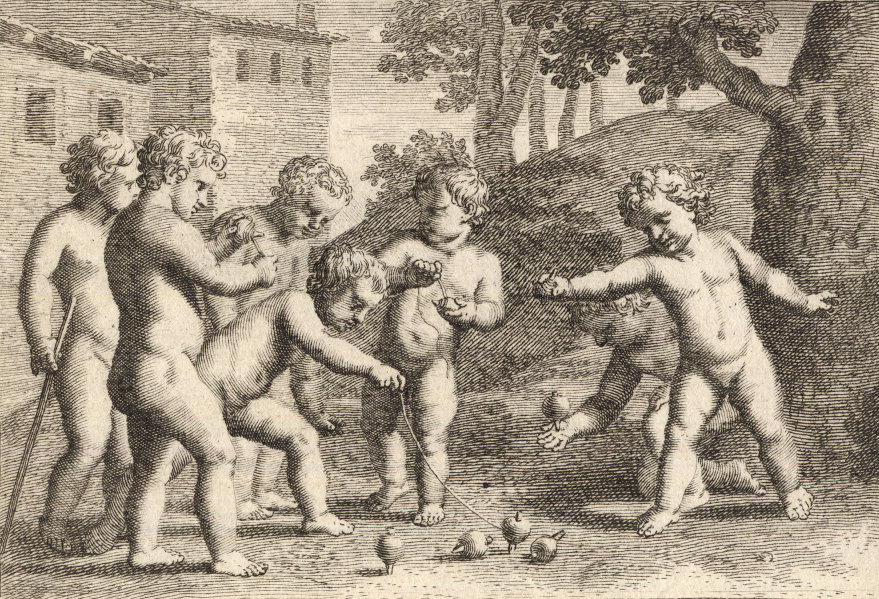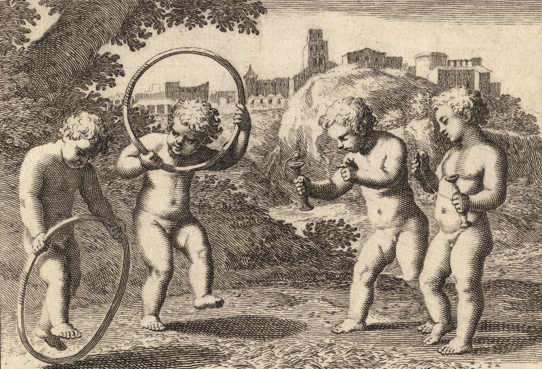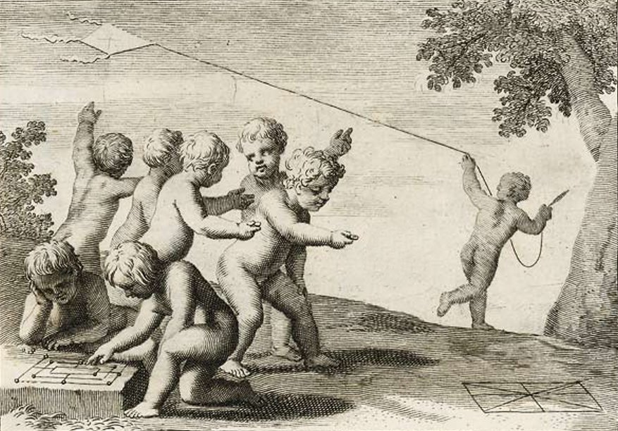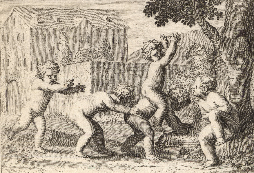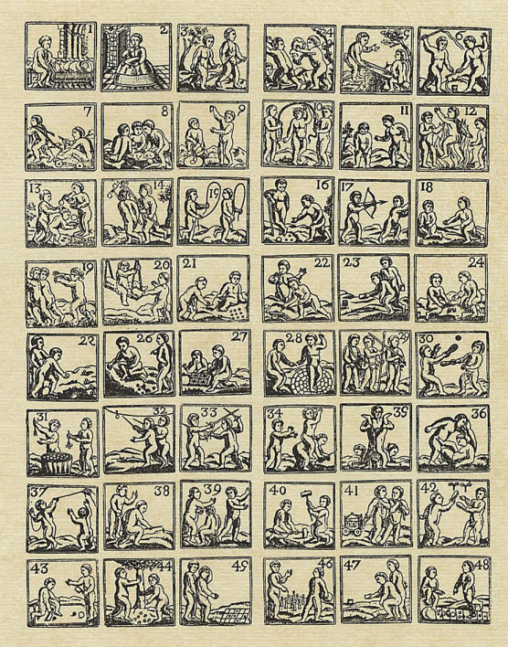 Durchgängig handelt es sich dabei um die Vorstellung von Kinderspielen. Im Original hängen die Bilder in der Bibliotheque Municipale de Lyon.
