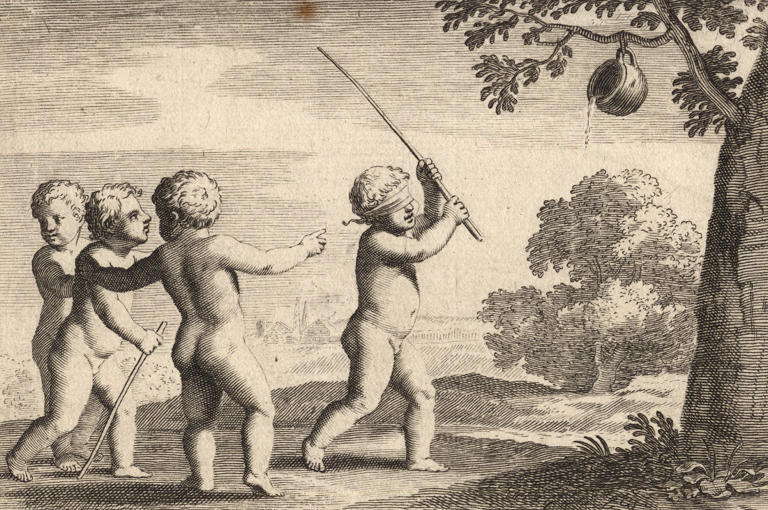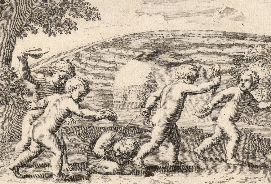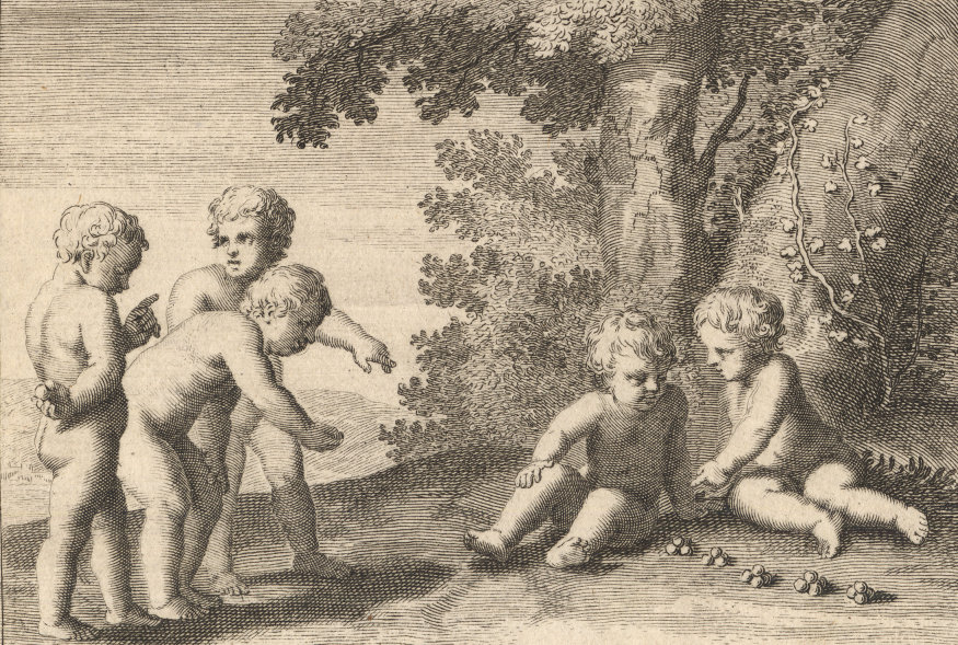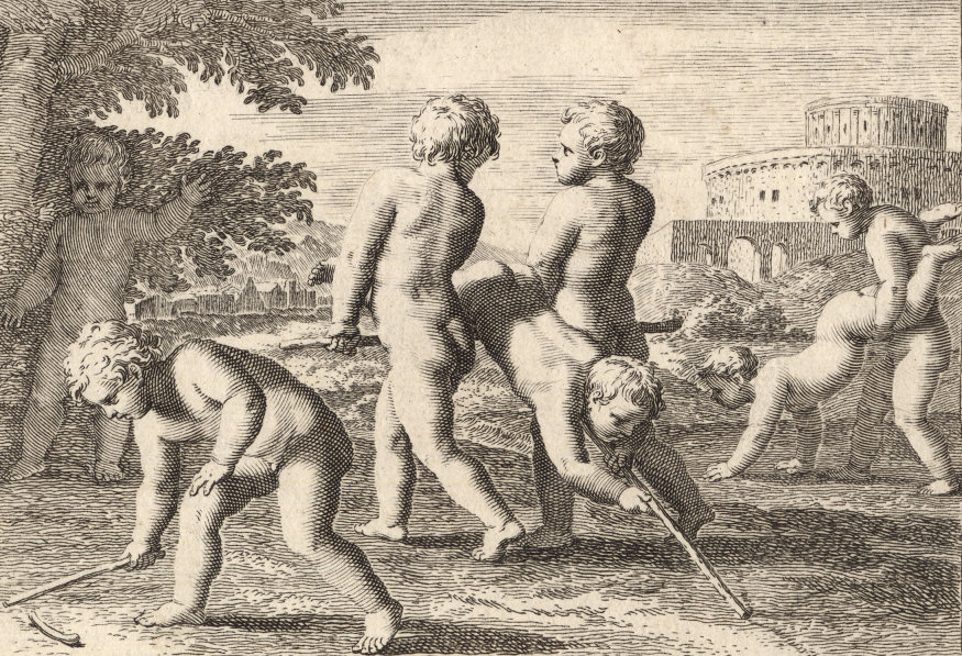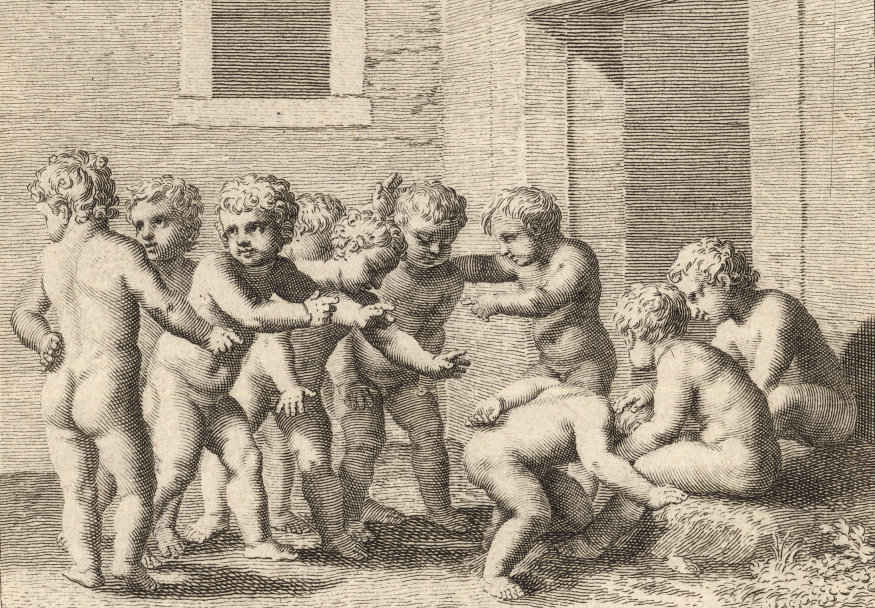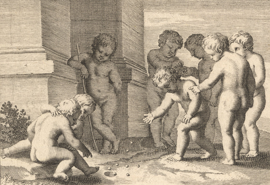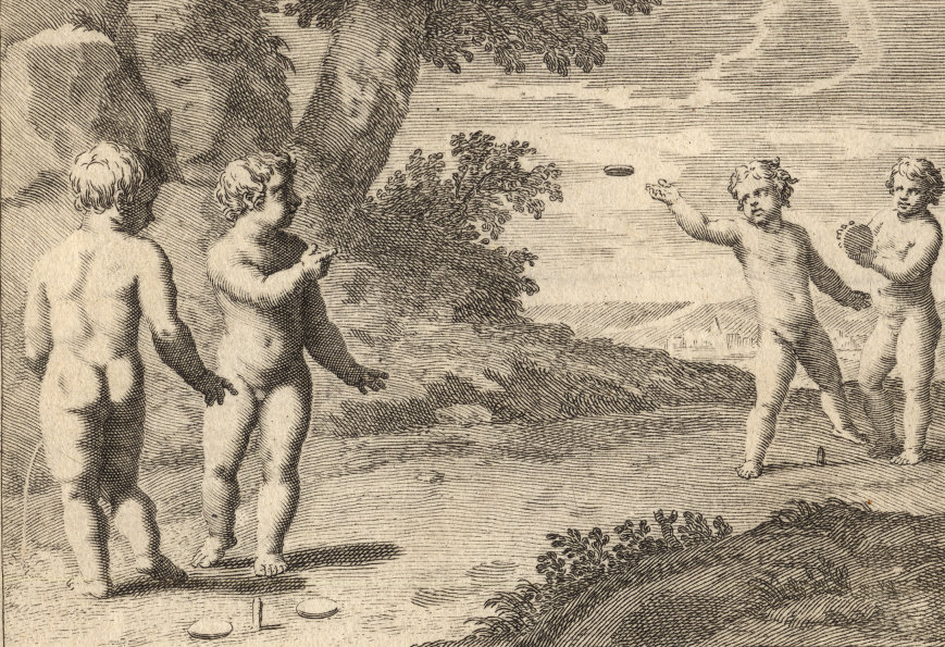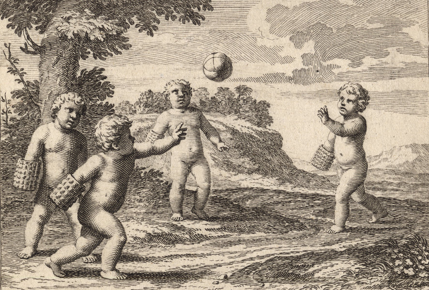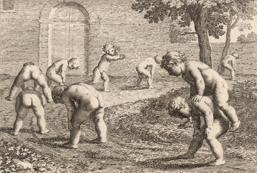 Durchgängig handelt es sich dabei um die Vorstellung von Kinderspielen. Im Original hängen die Bilder in der Bibliotheque Municipale de Lyon.