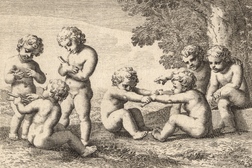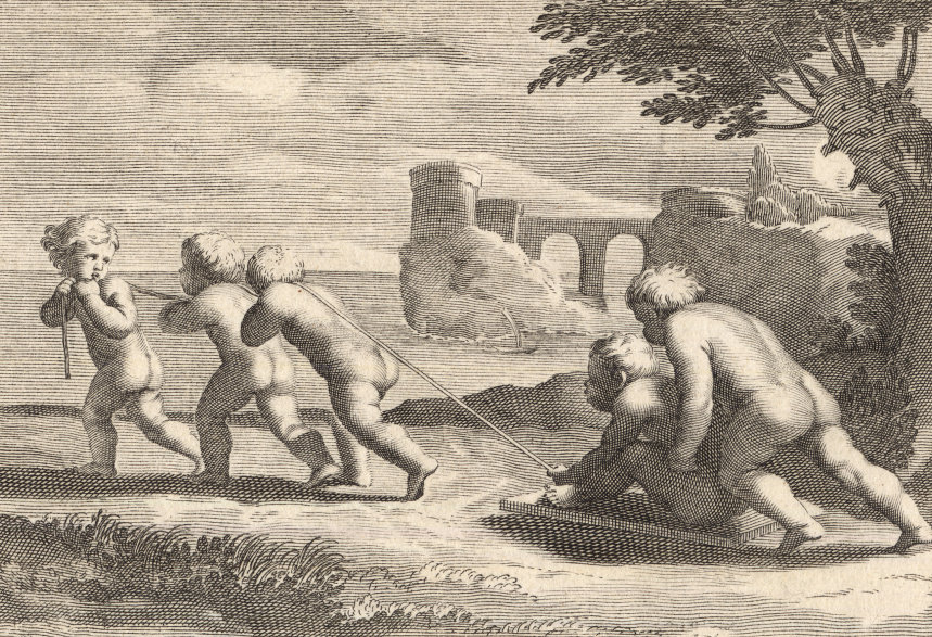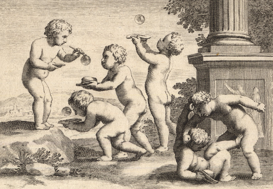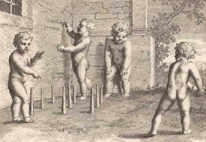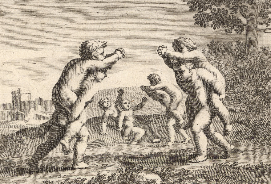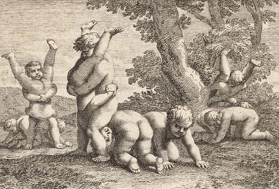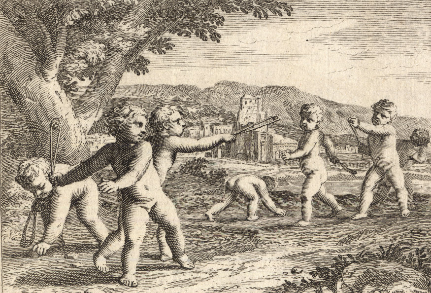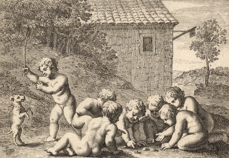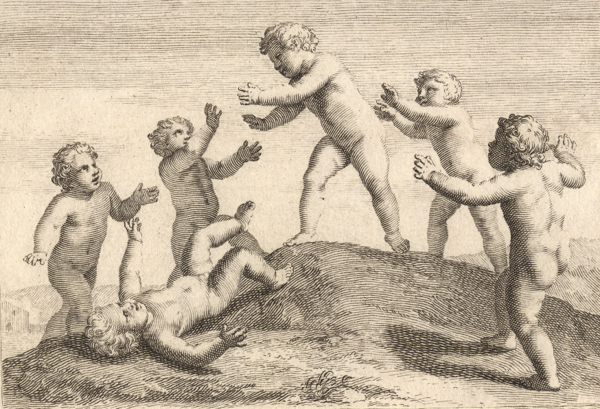 Durchgängig handelt es sich dabei um die Vorstellung von Kinderspielen. Im Original hängen die Bilder in der Bibliotheque Municipale de Lyon.