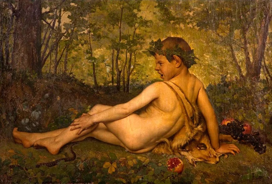 Satyr von einer Schlange gebissen