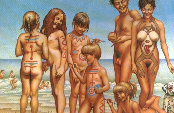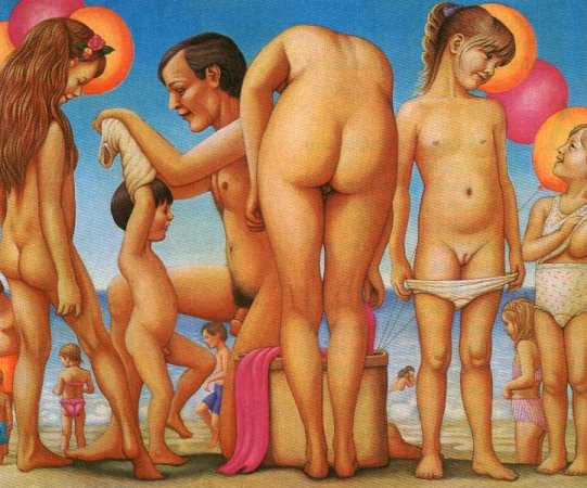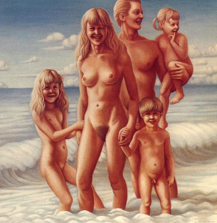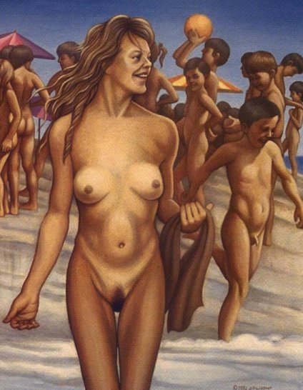 Amerikanischer Künstler und selbst Nudist, malt gerne Familien und Gruppen, vorwiegend nach Vorlagen.