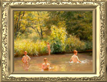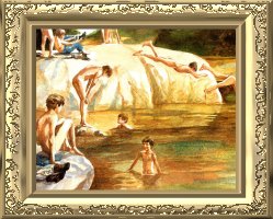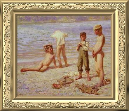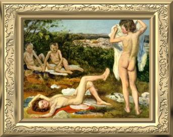 In der Malerei finden wir häufig Bilder, auf denen nackte Menschen in der Natur gezeigt werden - dabei ist das Bildnis eines nackten Menschen in der Natur nicht gleich auch immer ein Motiv aus der Freikörperkultur. Da es mit diesen Motiven mehr als reichlich Bilder gibt, habe ich hier nur solche ausgewählt, die man durchaus zur Freikörperkultur rechnen kann, wobei nicht unbe- dingt immer der Mensch im Vordergrund steht.