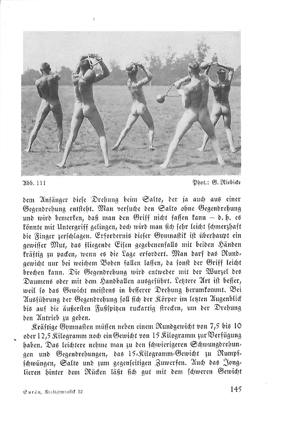 In diesem Buch beschreibt Hans Surén zunächst gymnastische Übungen, welche mit einfachen Sportgeräten wie dem Medizinball auskommen und den Beginn der eigentlichen Kraftübungen bilden.