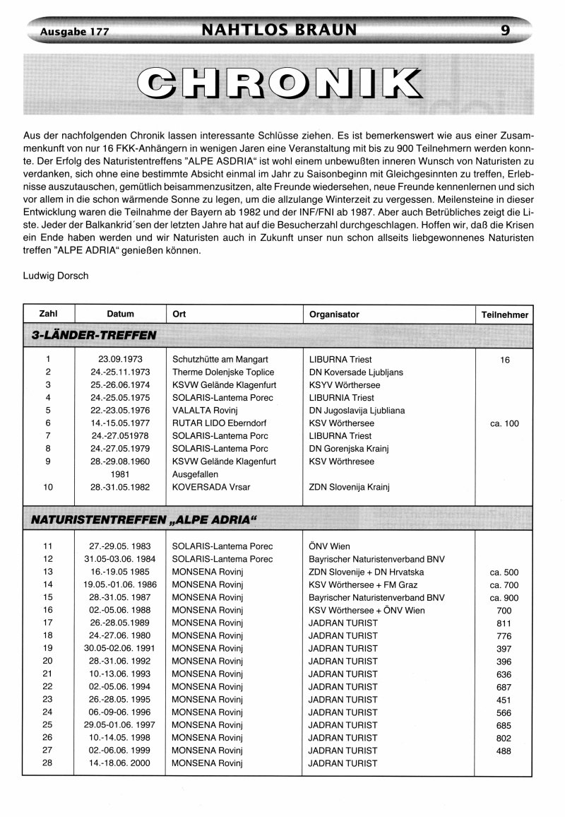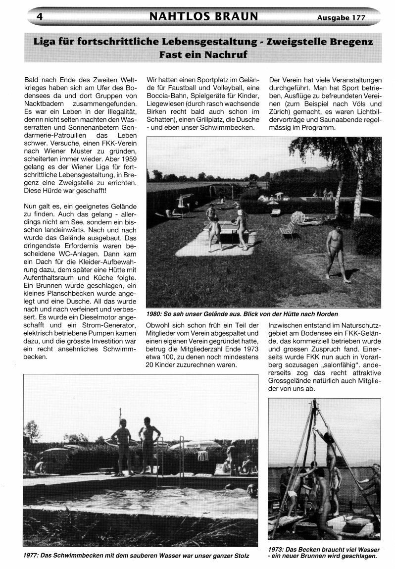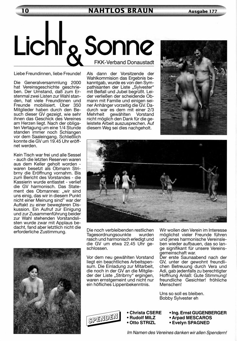NAHTLOS BRAUNInformationsblatt für FKK-FreundeOffizielles Organ des Österreichischen Naturistenverbandes (ÖNV) Ausgabe 177 Nr. 1 • März / April / Mai 2000 |