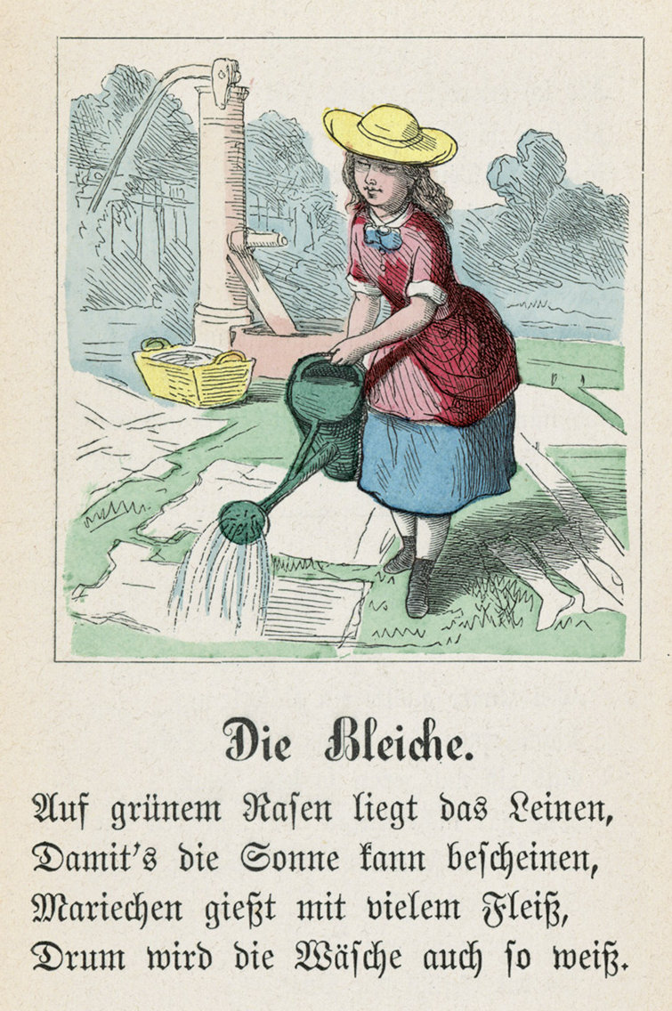 Es gibt Bilder, die bei genauerer Betrachtung durchaus Fragen aufwerfen. Besonders jüngere Menschen dürften - zu Recht - fragen, warum die junge Frau die auf dem Boden liegenden Wäschestücke „begießt”, denn auf dem ersten Blick erscheint dies doch recht unlogisch zu sein.