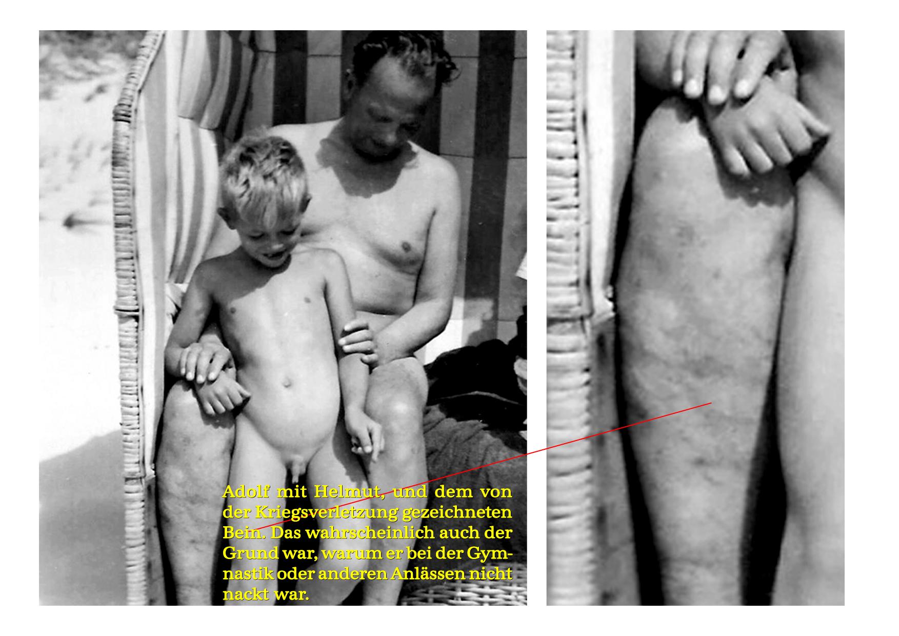 1949 sorgte Adolf dafür, das Mutter und Kind für lange Zeit in die Schweiz – zu FKK-Anhängern – reisen konnten und dort „aufgepäppelt” wurden. Zu dieser Zeit war er schon mit Irmgard Richter, seiner späteren (dritten) Frau, zusammen, die sich dennoch besorgt um Helga und mich kümmerte. Sie als Lehrerin, war auch das finanzielle Rückgrat, aus dem sich die Alimente für mich speisten.