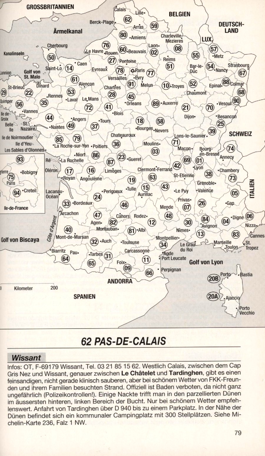 | Übersichtskarten mit nummerierten FKK-Plätzen, zu denen es jeweils kurze Beschreibungen gibt. |
