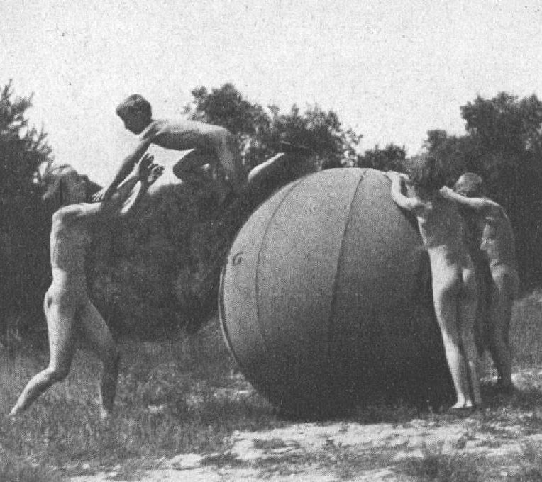 Dieser überdimensional große Ball mit einem Durchmasser von ungefähr 150 cm war früher sehr beliebt - und dies nicht nur bei den Naturisten.