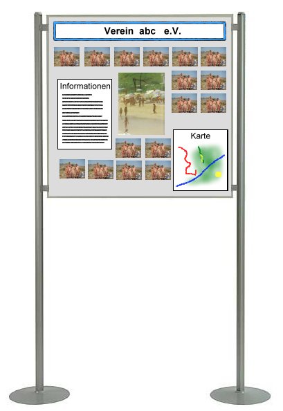 Auch der jeweilige Verein, in welchem die Ausstellung gerade zu Gast ist, kann mit seiner eigenen Vereinsgeschichte integriert werden.