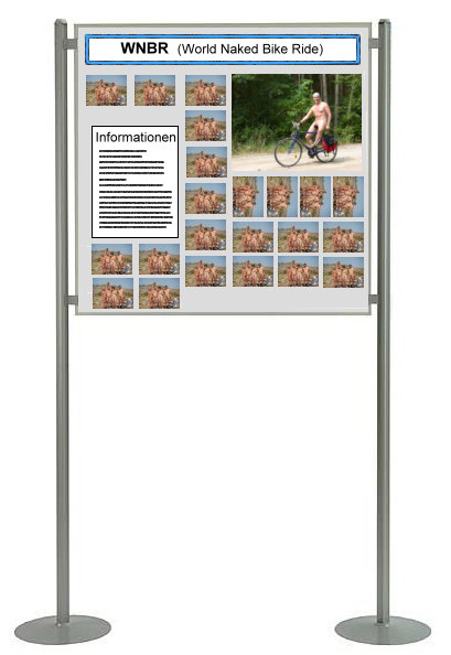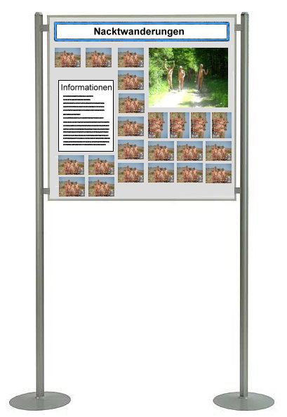 Ist im Ausstellungsraum genügend Platz vorhanden, könnte man auch benachbarte FKK-Vereine, bzw. FKK-Vereine in der Region vorstellen. Weiterhin auch Info-Wände zum DFK und der INF. Darüber hinaus auch weitere Nackt- Aktivitäten, die außerhalb von den Vereinen stattfinden und über welche auch in der Presse positiv berichtet wird, wie zum Beispiel die immer be- liebter werdenden Nacktwanderungen, der WNBR, nackte Boots-Touren, Nackt-Kegeln, und, und, und |