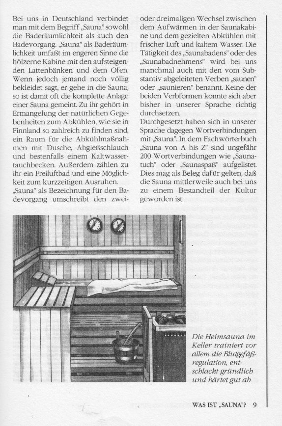 Schon heute besuchen viele Menschen regelmäßig die Sauna und betreiben damit aktive Gesundheitspflege. Das finnische Heißluftbad beugt nicht nur Erkältungskrankheiten vor, es dient darüber hinaus auch dem allgemeinen Wohlbefinden. Wichtig ist dabei stets, daß der Badeablauf stimmt.