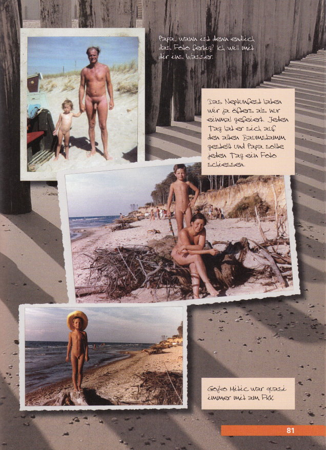 | Klappentext: Urlaubszeit, schönste Zeit, das wußte auch der DDR-Bürger, und so mancher genoß die schönen Tage am liebsten so, wie Gott ihn geschaffen hatte. 80% der Familien hatten FKK-Erfahrung, sagen die Statistiker. Was sind schon Zahlen? Dieses Buch zeigt das fröhliche nackte Leben an den FKK-Stränden die Ostsee rauf und runter und das »Baden ohne« an Baggerseen oder Steinbrüchen. Es erinnert an eine zumindest in textiler Hinsicht unbeschwerte Freizeit. Ein Buch, für das Hobbyfotografen ihre Archive geöffnet haben. |