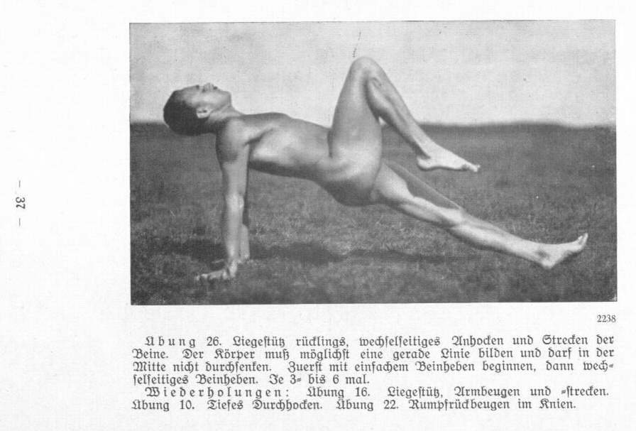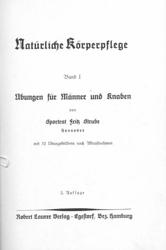 Taschenbuch mit 32 Übungsbildern - Aufnahmen aus dem Studio und im Freien. Sportrat Fritz Strube stellt in diesem Büchlein zum größten Teil einfache Gymnastikübungen vor, welche man ohne