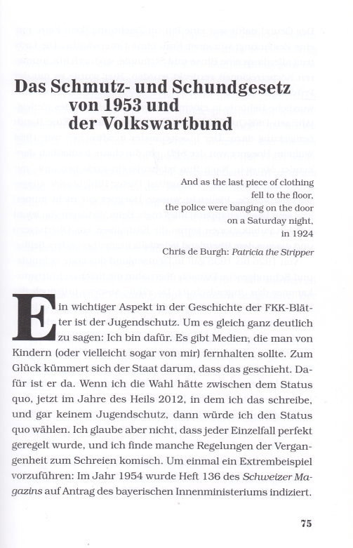 | Anmerkung: Besonders interessant ist der Blick auf die Zeitschriften der Freikörperkultur und deren Verlage in der Zeit nach dem Kriegs. Frei nach dem Motto: [Zitat] »Ein Verleger ist kein Idealist, sondern ein Geschäftsmann« [Zitat - Ende] war einzig und allein der Profit gefragt - und dieser liess sich fast nur über das Bildmaterial machen. |