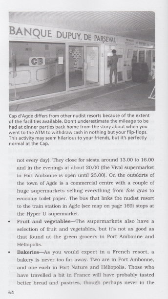 Dieses Buch gibt einen guten und recht genauen Einblick in die Ferien-Anlage, bzw. die Nudisten-Stadt Cap d'Agde. Ross Velton hat bei seinen Recherchen genau hingeschaut und so gibt es zahlreiche Tipps und Ratschläge für Familien, Paare und auch Alleinreisende, die Cap d'Agde besuchen.