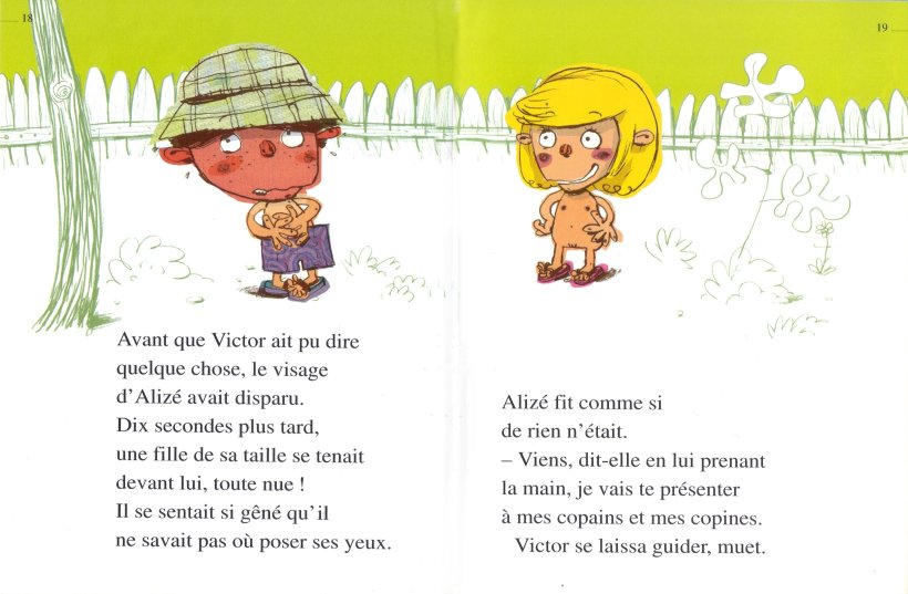 Erst als er die kleine Alizé kennenlernt, die auch in seinem Alter ist und nackt, wie auch die anderen Kinder und Erwachsenen herumläuft, springt Victor über seinen Schatten und zieht sich nun auch aus.