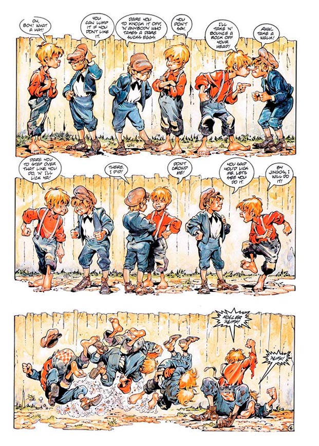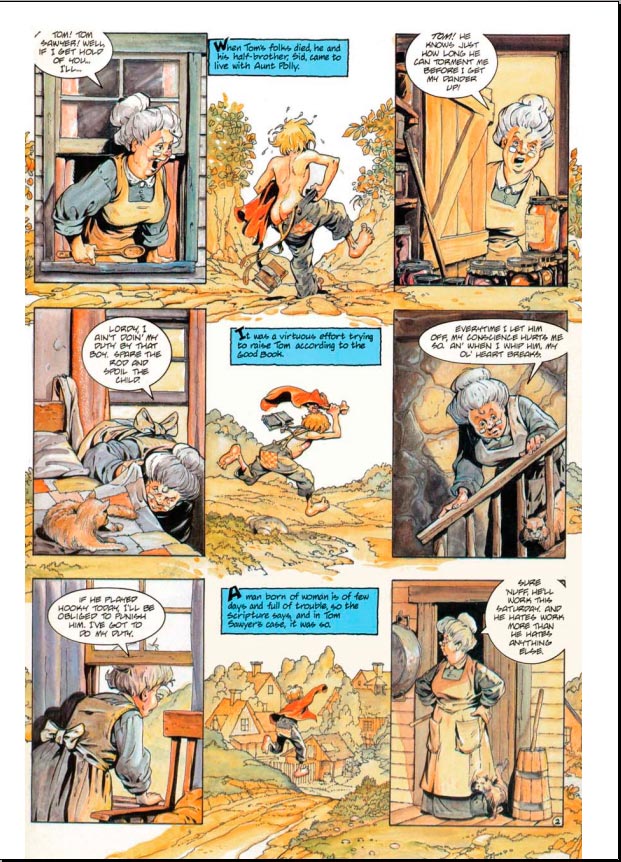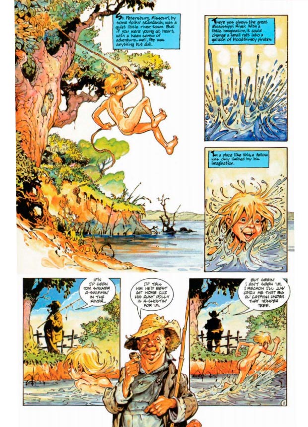 Mark Twain: Die Abenteuer von Tom Sawyer und Huckleberry Finn in einer Comic-Version, gezeichnet von Michael Ploog und Texten von Willie Schubert. Frisch und „frech” gezeichnet, eben so, wie man sich die beiden Hauptdarsteller auch vorstellt. Ein paar ihrer Streiche und Abenteuer in diesem Comic vorgestellt, frei nach Mark Twain.