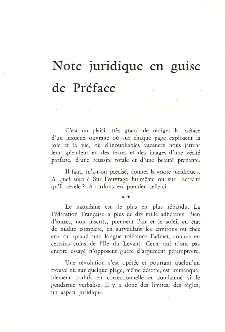 Weiterhin enthält dieses Buch eine Einführung in den Naturismus und die rechtliche Situation bezüglich der Nacktheit in Frankreich.