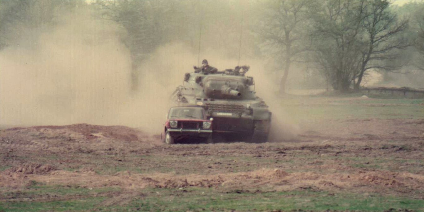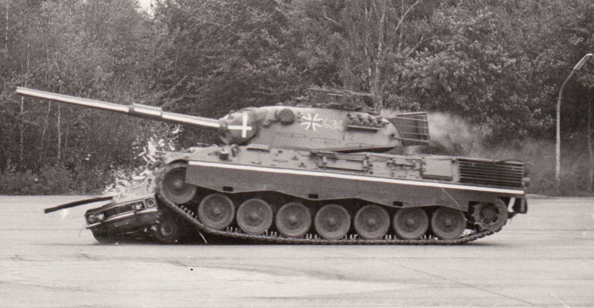Natürlich ist es spannend und aufregend zu sehen, wie so ein PKW von einem Panzer überrollt wird ... und was dann von dem Auto übrig bleibt, ... aber da gibt es noch so rein nebenbei den aufklärerischen Aspekt, dass man Panzer niemals unterschätzen sollte. Zum Beispiel auf Übungen, wo Panzer auch die Straßen (be-)nutzen.