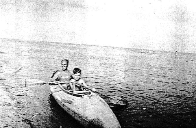 „Er kann noch nicht schwimmen”, gab meine Mutter zu bedenken. Aber dann saß ich doch vorne im Boot, einen riesigen Schwimmreifen um den Bauch.