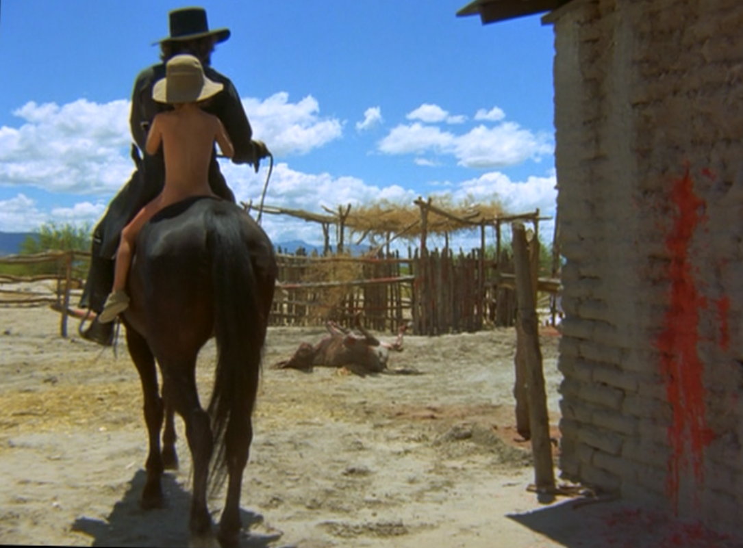 Ein in schwarz gekleideter Kopfgeldjäger und sein nackter Sohn reiten durch die Wüste. Irgendwo in diesem Niemandsland steigen sie ab und knien sich in den Sand. Der Kopfgeldjäger gibt seinem kleinen Jungen eine Puppe und ein gerahmtes Foto und sagt: „Du bist nun sieben Jahre alt, und ein Mann, vergrabe also dein erstes Spielzeug und das Foto deiner Mutter”.
