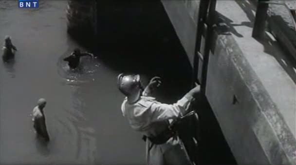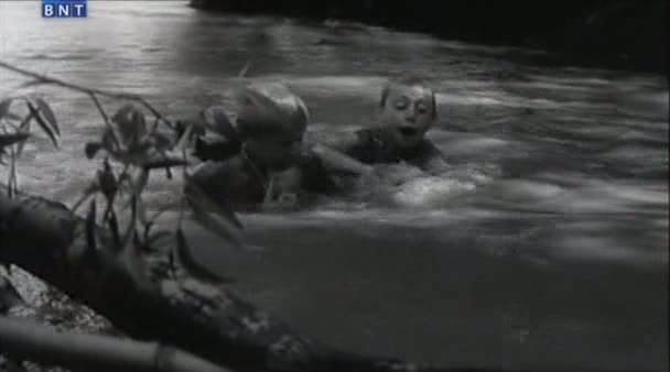 Bei der ganzen Toberei gerät einer der Jungen mit seiner Hand in einen Spalt an der Eisenbahnbrücke - er kann sich nicht befreien, klemmt fest. Auch die Freunde können nicht helfen und es wird noch schlimmer, denn das Wasser steigt.