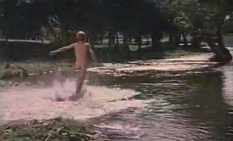 Eigentlich sollte Nică auf das Baby aufpassen, doch er hört, wie die anderen Kinder spielen ... und er sieht Küken im Wasser planschen. Spontan entschliesst er sich dazu, im Fluß zu baden. Unbekümmert zieht er sich aus und planscht und spielt im Wasser, bis seine Mutter ihn entdeckt und ihm die Kleidung wegnimmt. Nun muss Nică, ob er will oder nicht, nackt nach Hause laufen, was ihm nun doch ein wenig peinlich erscheint, und so nutzt er jede Deckung aus, die sich ihm auf dem Weg so bietet.