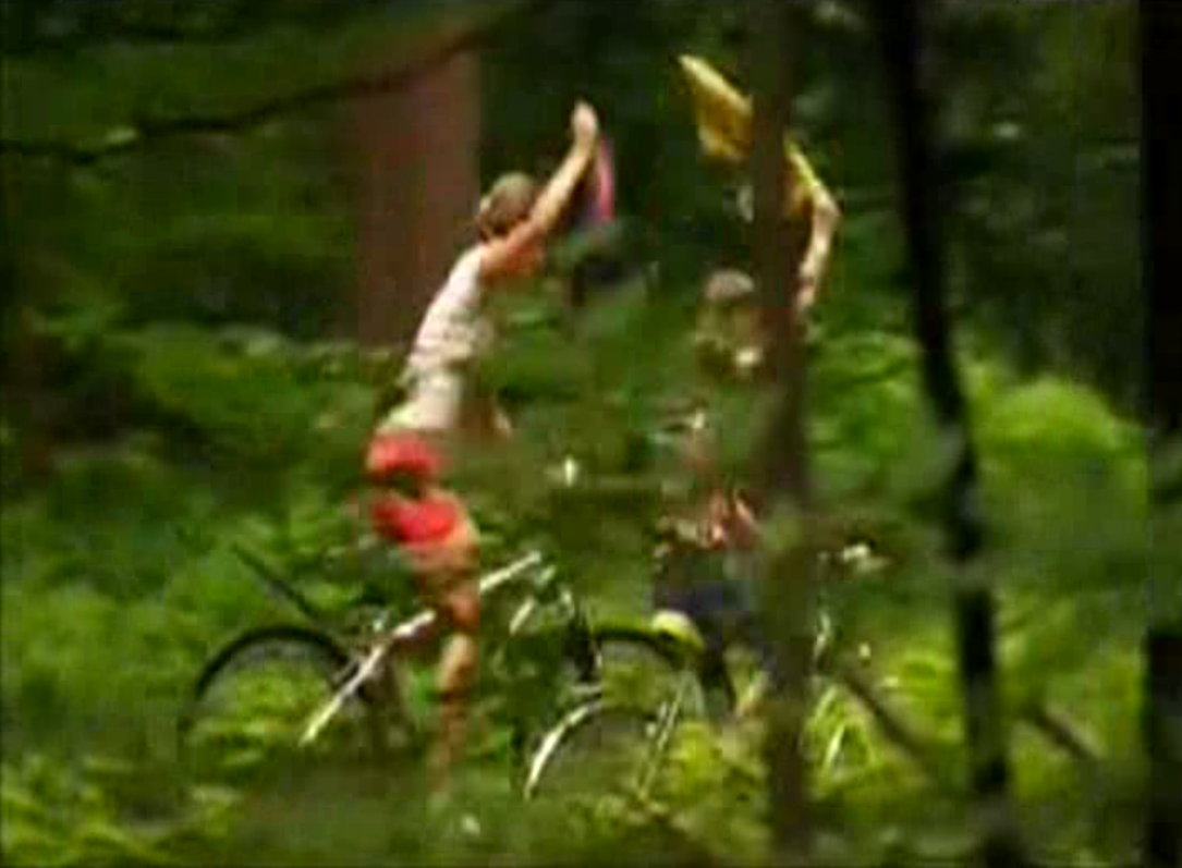 Die Frau geht weiter, der Junge zieht sich ganz aus. Zwei Mädchen entdecken den nun nackten Jungen und machen sich einen Spaß daraud, ihm seine Kleidung zu stiebitzen und damit davon zu radeln.