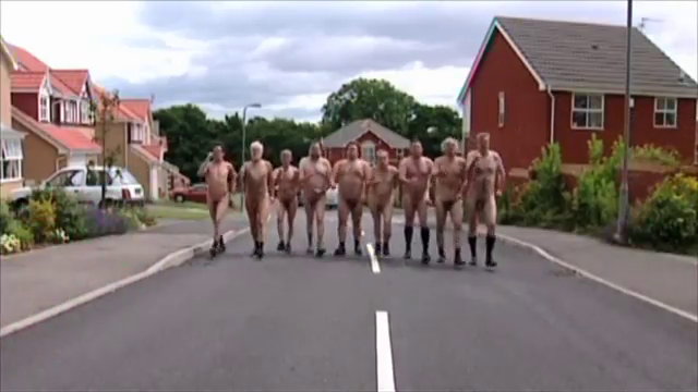 Für den Eis-Verkäufer kommt allerdings jede Hilfe zu spät, obwohl auch er noch versucht, sich selbst zu retten, schafft er das aber nicht. Nackt springt er aus seinem Eis-Wagen und schließt sich den nackten Männern an - nun singen sie: „ten naked men, just walking down the road”...