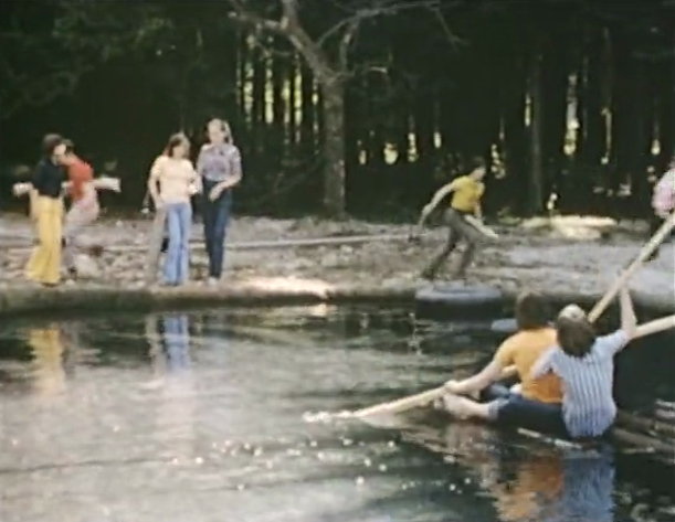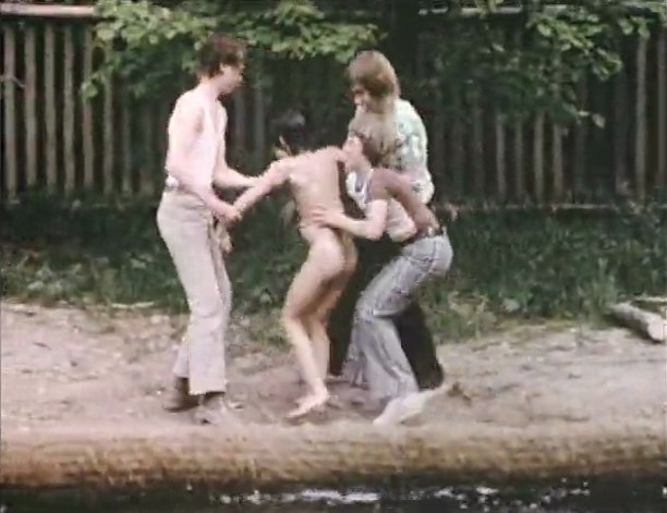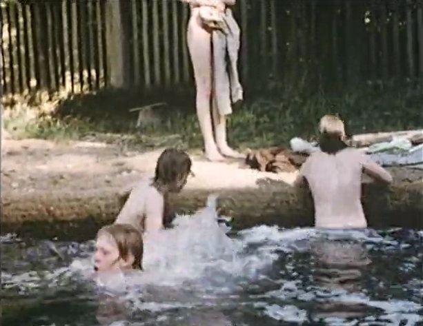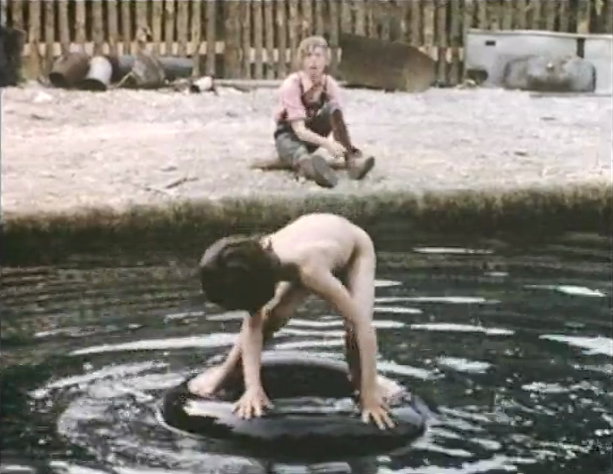Ein Baumhaus wird von den Kindern gebaut - um Balken zu verbinden, werden Holzklammern benötigt, welche aber von zwei anderen Jungen in Beschlag genommen wurden, um ein Floß zu bauen. Ärgerlich, denn die Jungen sind mit dem Floß auf dem Teich. Um schnell an die Holzklammern zu kommen, ziehen sich die anderen Jungen spontan aus und springen ins Wasser, um das Floß zu „entern”. Die Planscherei macht aber mehr Spaß und so bleiben die Holzklammern, wo sie sind ... im Floß.