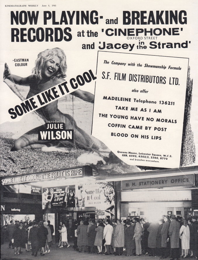 „Some Like It Cool” handelt von der jungen Frau Jill (Julie Wilson, 1924-2015), die einen prüden Mann heiratet und ihm dann gesteht, dass sie eine Nudistin ist.