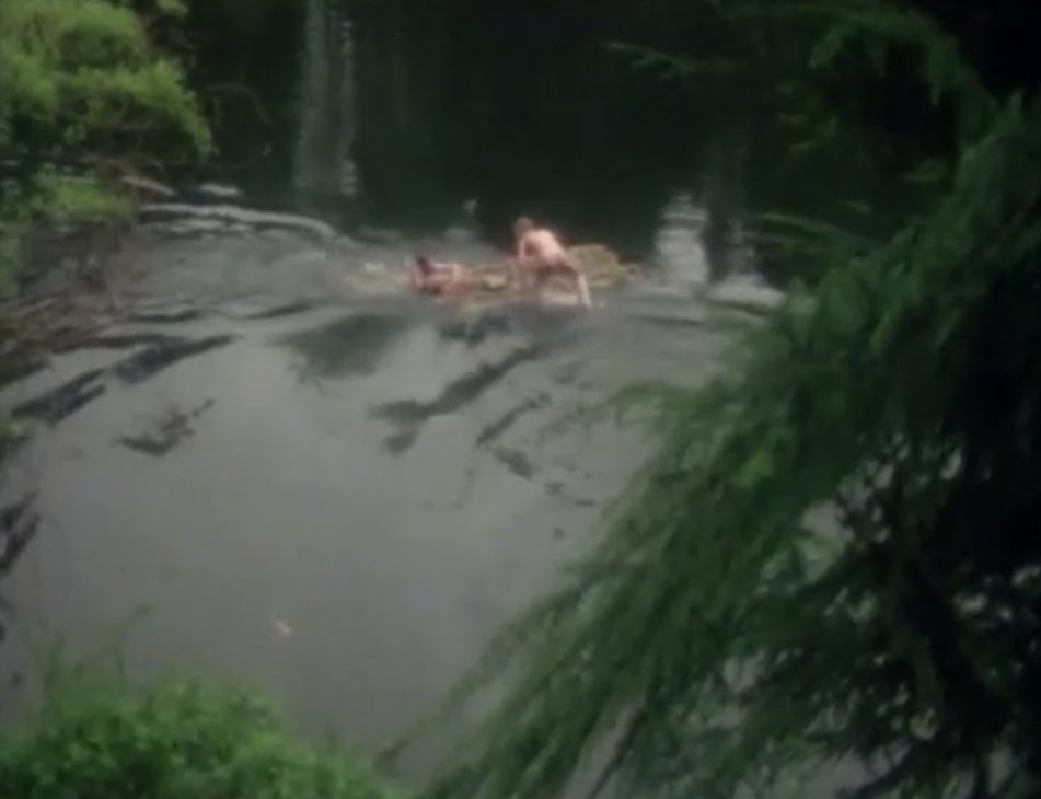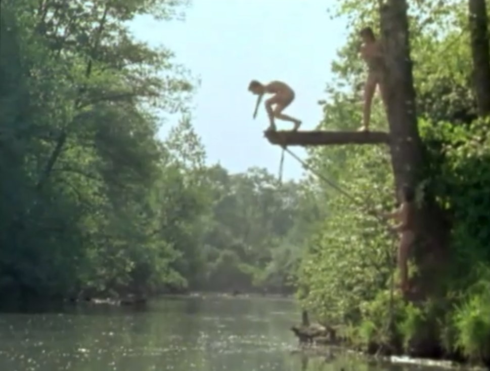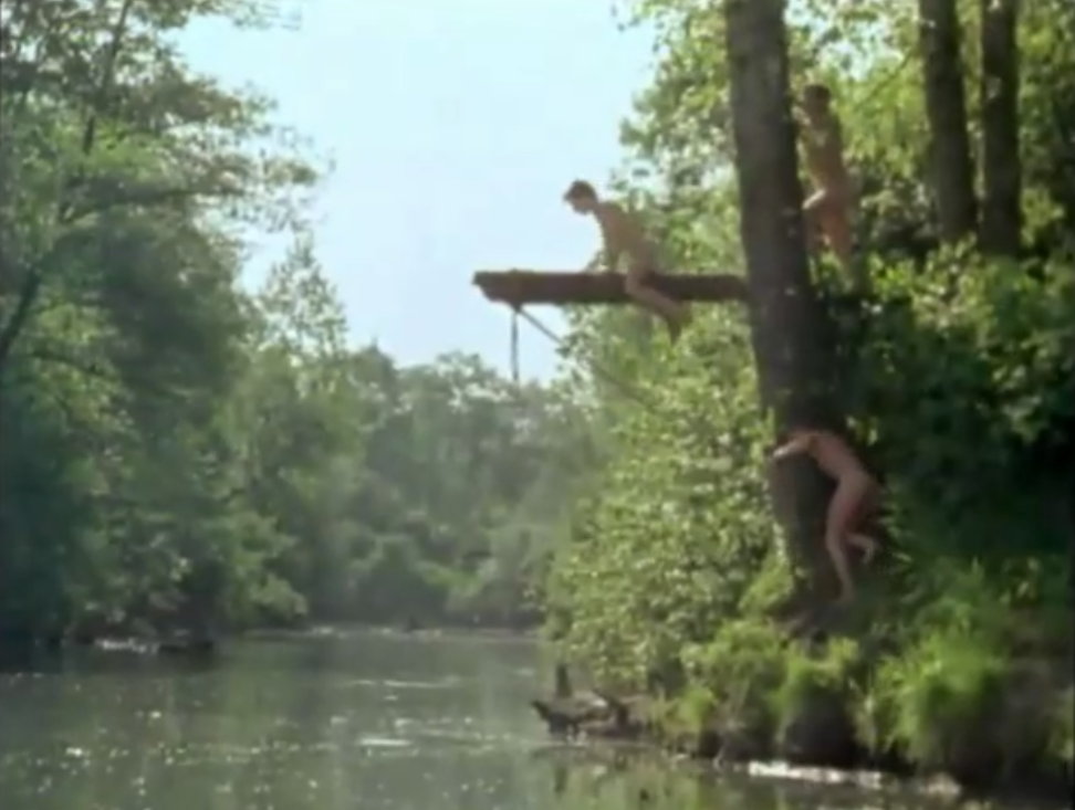 Bei den zahlreichen Abenteuern, die Huckleberry Finn (Ian Tracey) und Tom Sawyer (Sam Snyders) erleben, muss auch einmal eine kurze Entspannung sein. Da bietet sich ein Bad im See dann durchaus an.