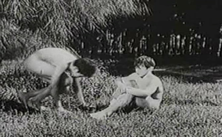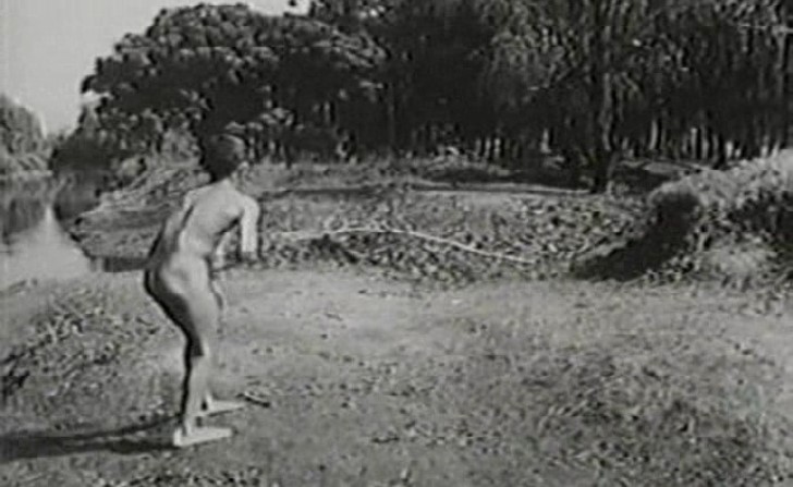 FKK-Szenen: Die freie Zeit, die der strenge und harte Alltag im Heim den Jungen bereitet, nutzen diese, um heimlich in einem nahe gelegenen Fluß zu baden und am Ufer zu spielen, bis sie wieder trocken sind.