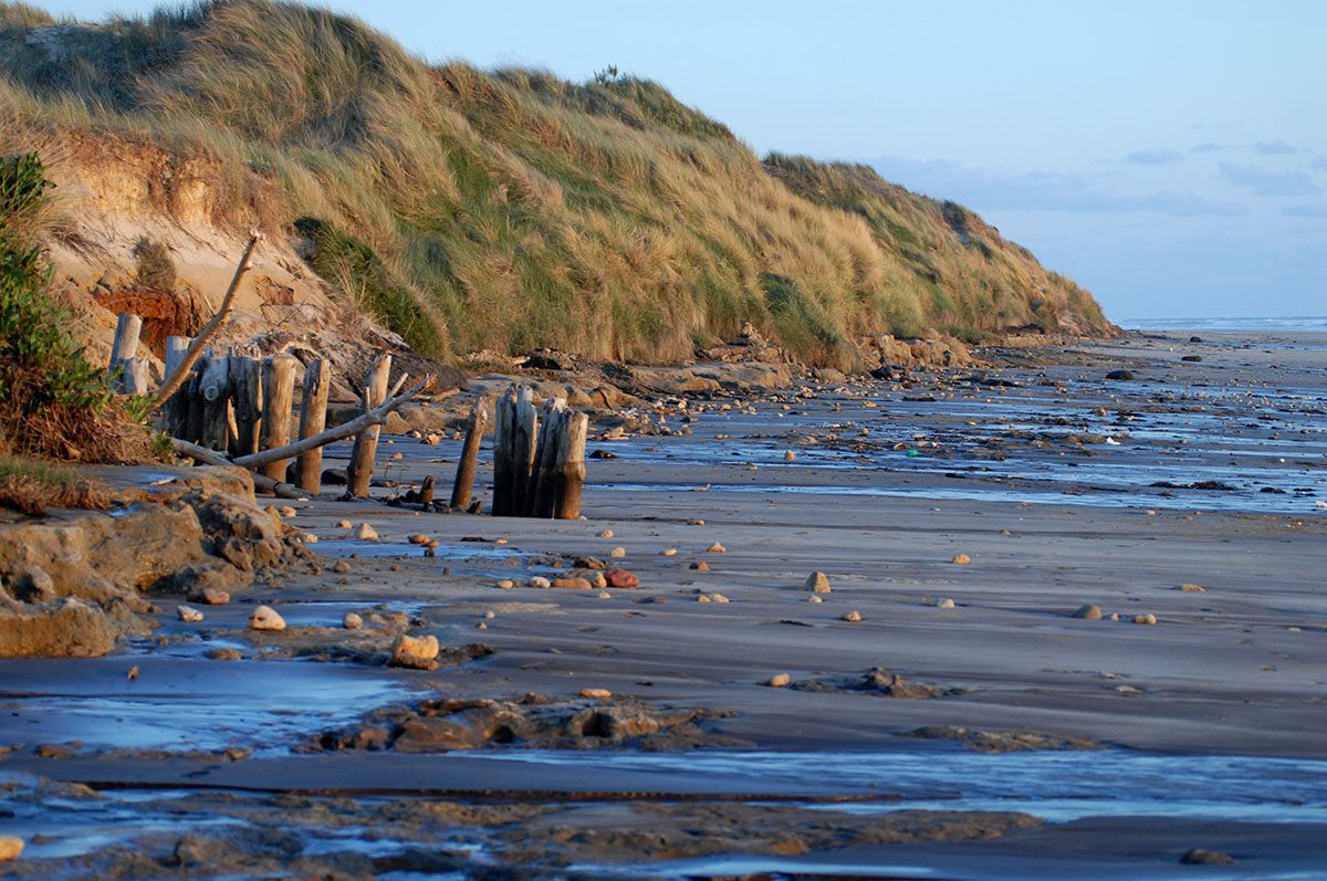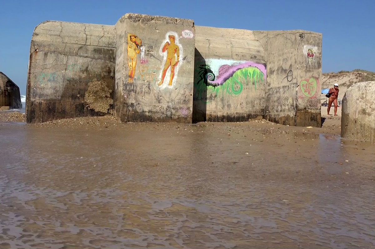 Ursprünglich standen die Bunker oben auf den Dünen, rutschten aber im Laufe der Jahre zum Strand hinunter, wo sie auch heute noch stehen, bzw. liegen und dem Zahn der Zeit, den Naturgewalten, aus- gesetzt sind. Alle Maßnahmen, die Bunker hier zu beseitigen schlugen fehl und man beließ sie einfach an Ort und Stelle.