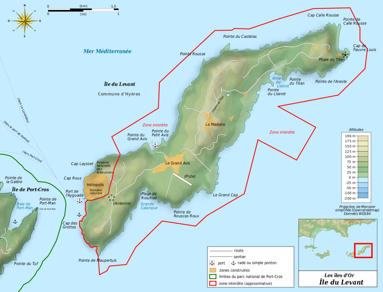 Die Île du Levant liegt vor der französischen Mittelmeerküste bei Toulon und verfügt über eine Gesamtfläche von 9 km². Sie ist die östlichste der Inselgruppe Îles d’Hyères.