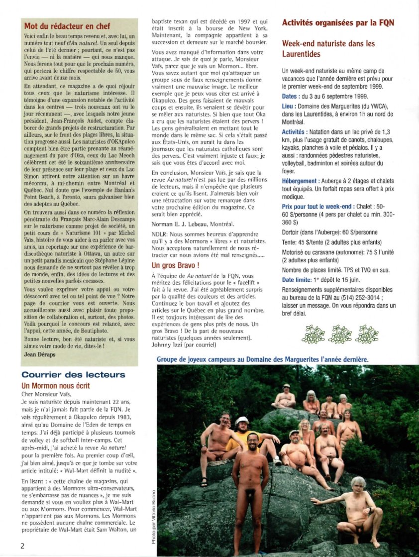 Au NaturelLa revue québécoise du NaturismeKanadaNº 49 • Sommer 1999 |