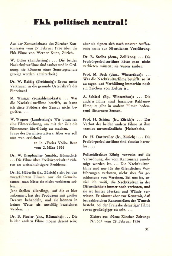 die neue zeit✷ Reiseführer ✷Ile du Levant Sylt FKK in der Schweiz Le Naturisme en Suisse |
