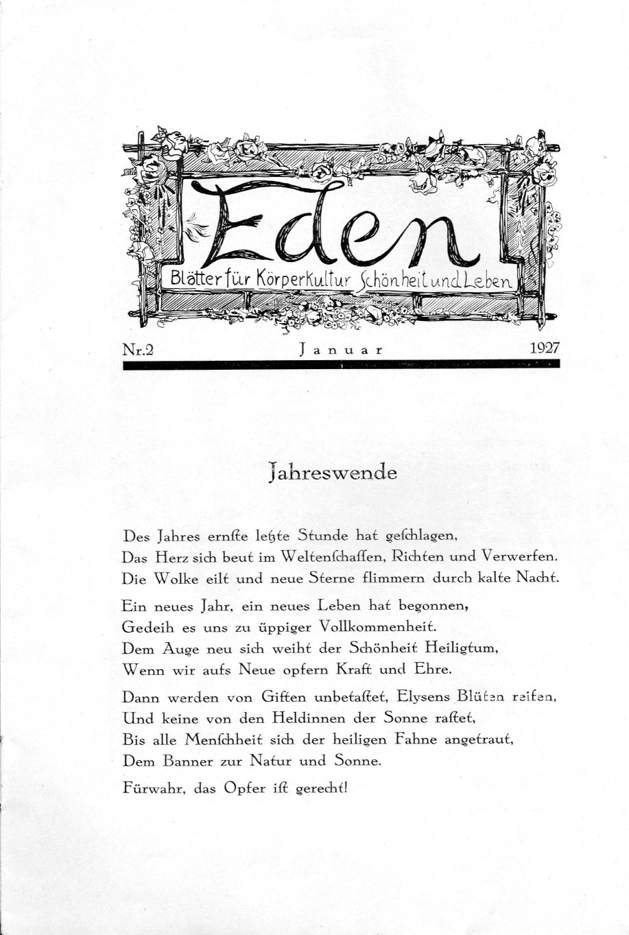 EDENBlätter für Körperkultur, Schönheit und LebenHeft 2 ✱ Januar 1927 |