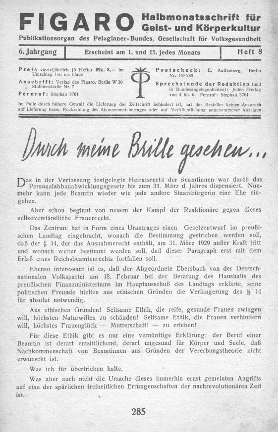 FIGAROHalbmonatsschrift für Geist- und KörperkulturHeft 8 • VI. Jahrgang April - 1929 |