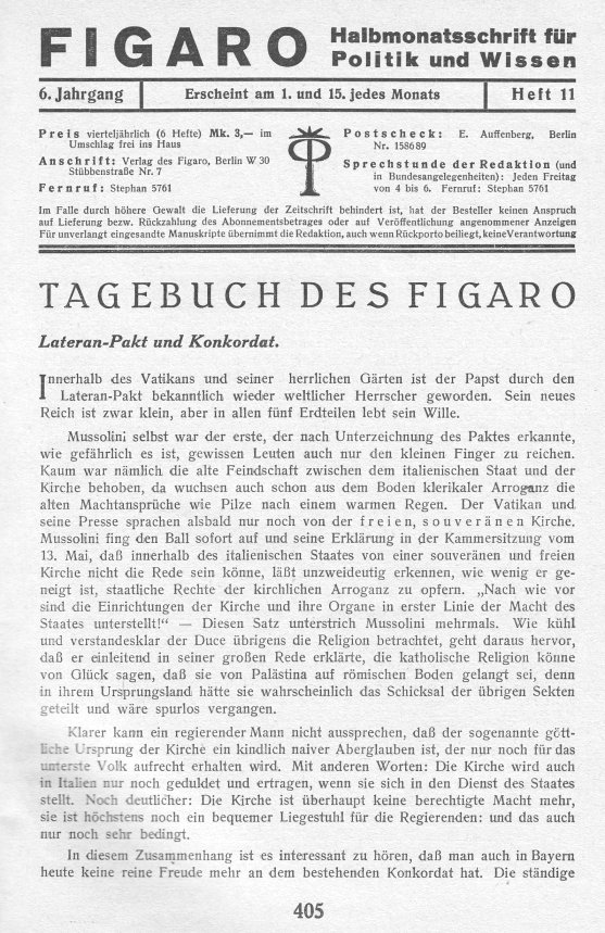 FIGAROHalbmonatsschrift für Politik und WissenHeft 11 • VI. Jahrgang Juni - 1929 |
