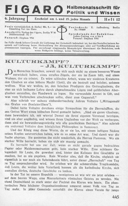 FIGAROHalbmonatsschrift für Politik und WissenHeft 12 • VI. Jahrgang Juni - 1929 |