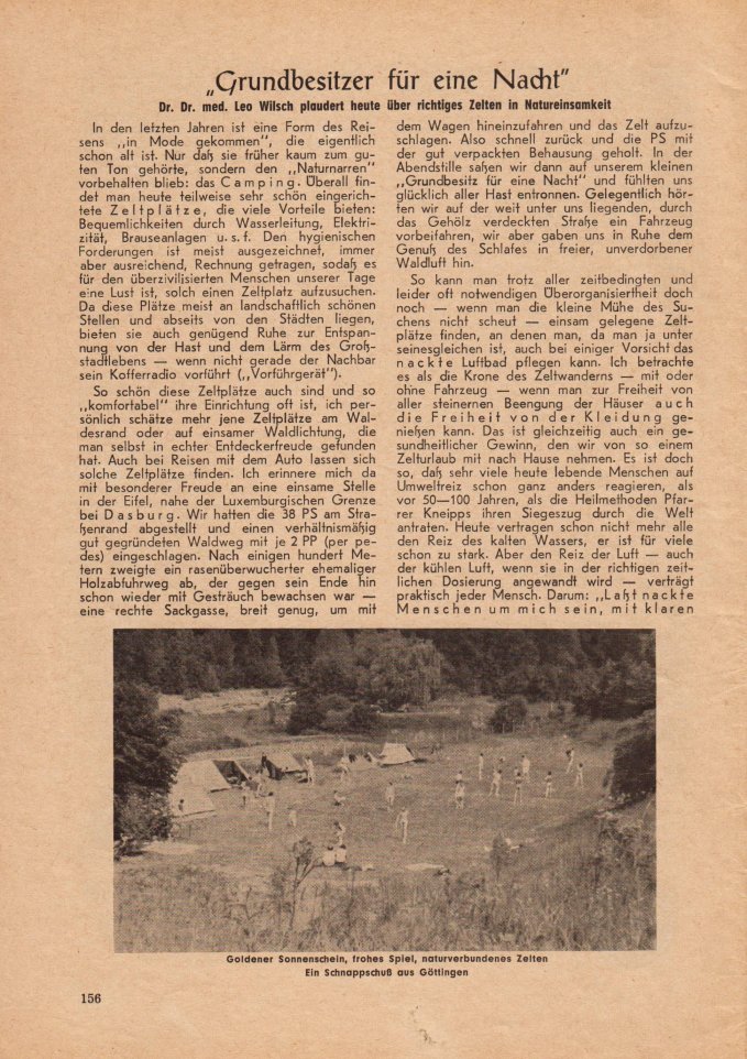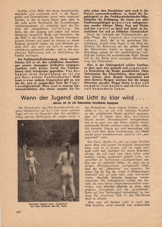 | „Ein Appell an das Herz” Westdeutsche FKK-Vereine wurden dazu aufgerufen, Berliner FKK-Kinder aufzunehmen, um ihnen eine erholsame Ferienzeit zu bieten, da Berlin in dieser Zeit noch zu größten Teilen in Trümmern lag → Aktion Kinderland |